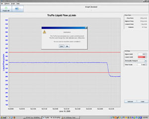 The actual sample flow is shown on the TruFlo's inbuilt digital display and a graph of the flow versus time can also be displayed on your computer.