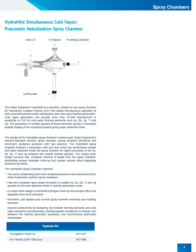The Glass Expansion HydraMist is a sensitive, simple-to-use spray chamber